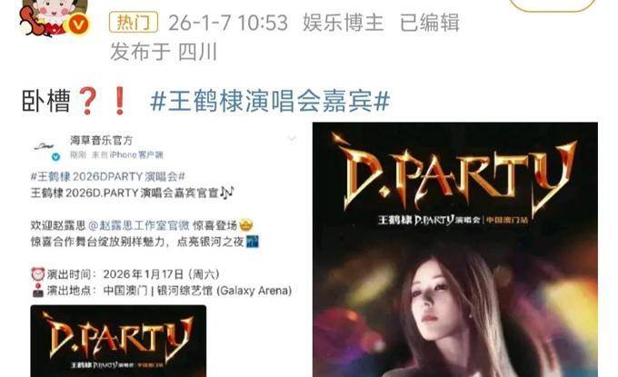 正是在这样的背景下,赵露思出乎意料地宣布她要成为王鹤棣演唱会的特邀嘉宾......