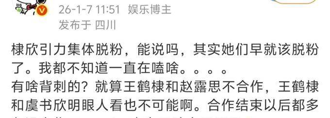 王鹤棣和赵露思不仅与虞书欣达成了合作协议,而且在虞书欣这个第三方的影响之下,粉丝们也不知不觉地产生了共鸣。