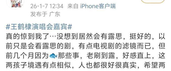 1月7号,海草音乐官方发博,官宣赵露思为王鹤棣的演唱会嘉宾,两人将在1月17号上演舞台合作。这一消息 突如其来, 让所有人 都为之震撼。网友 评论:今 日的互联网 被划分为两 个群