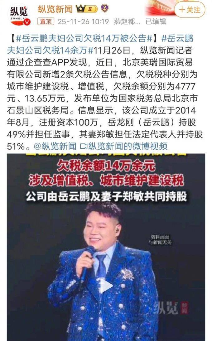 让我们回忆起去年11月的情景,那时岳云鹏的公司被曝光有欠税的消息,这让许多人感到震惊。