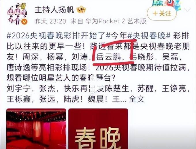 近 期,网友 们多次 意外地看到岳云鹏出现在春晚 的彩排 中,似 乎他正在为春晚 的节目做 前期准备。