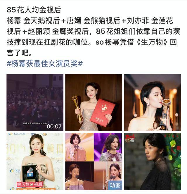 她以前在85花里不算起眼,但自从成功拿下威尼斯影后,名字一下子就被很多人记住了。