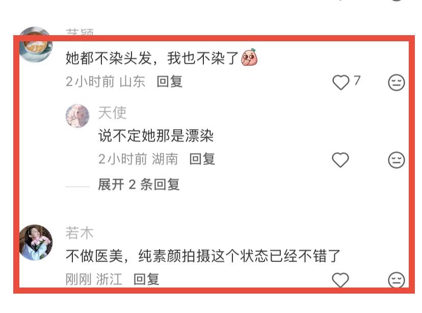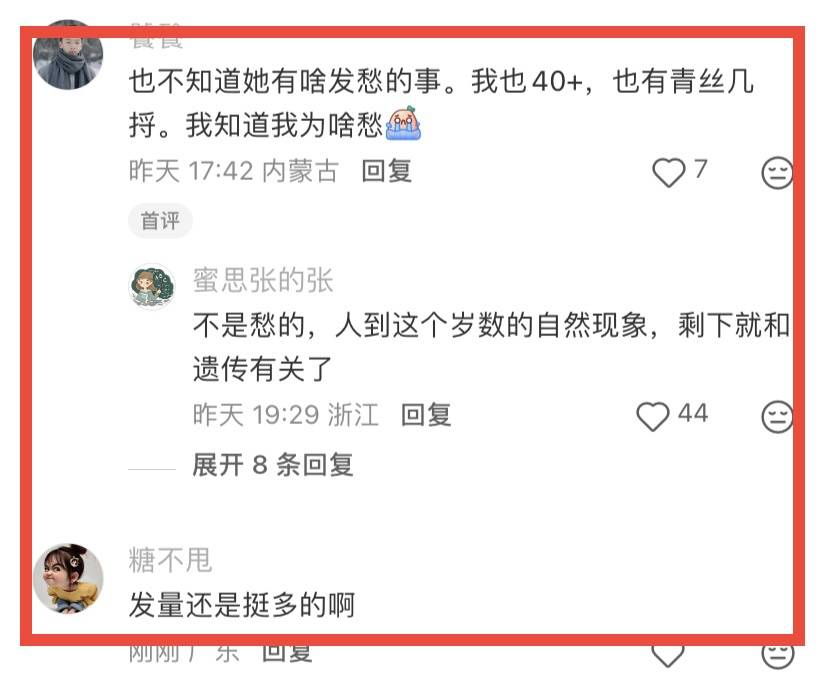 看了郭晶晶的白发,有网友感叹:她都不染头发,我也不染了。