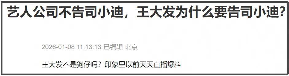 如今被司晓迪爆料了这么久,都没说出来硬刚起诉,搞得网友都怀疑是不是涉及到某些利益链,才推王大发出来,捂嘴司晓迪。
