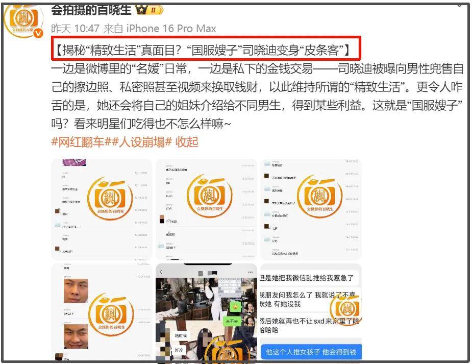 此前就有网友根据狗仔爆料怀疑司晓迪给别人介绍女伴的行为,存在一些不当之处。