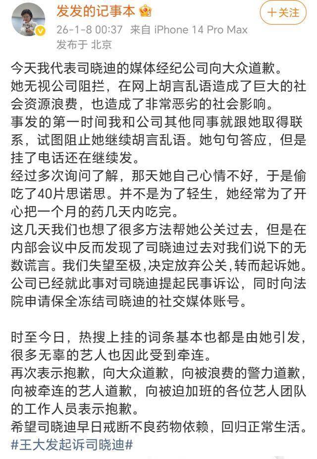 紧接着,司晓迪所在公司的老板王大发也出来锤她,说她经常借钱,与狗仔此前的说法不谋而合;有不良药物依赖,已经起诉她。为了佐证其说法,王大发晒出了相关证据。