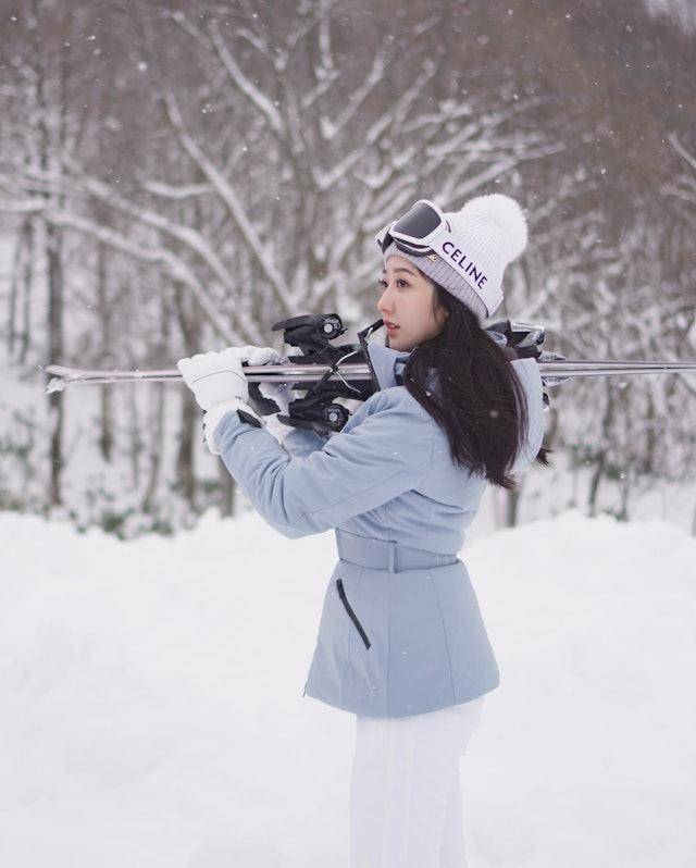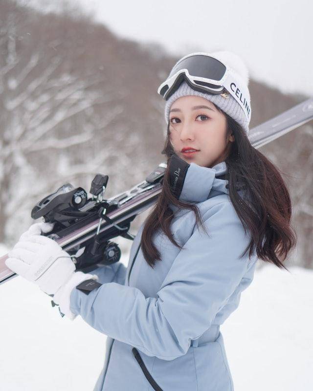 近日,TVB小花何依婷在社交平台分享了一组滑雪靓照。照片中,她身着全套奢侈品牌滑雪装备——Louis Vuitton冷帽、Celine滑雪镜、Christian Dior滑雪服,在雪地里显得