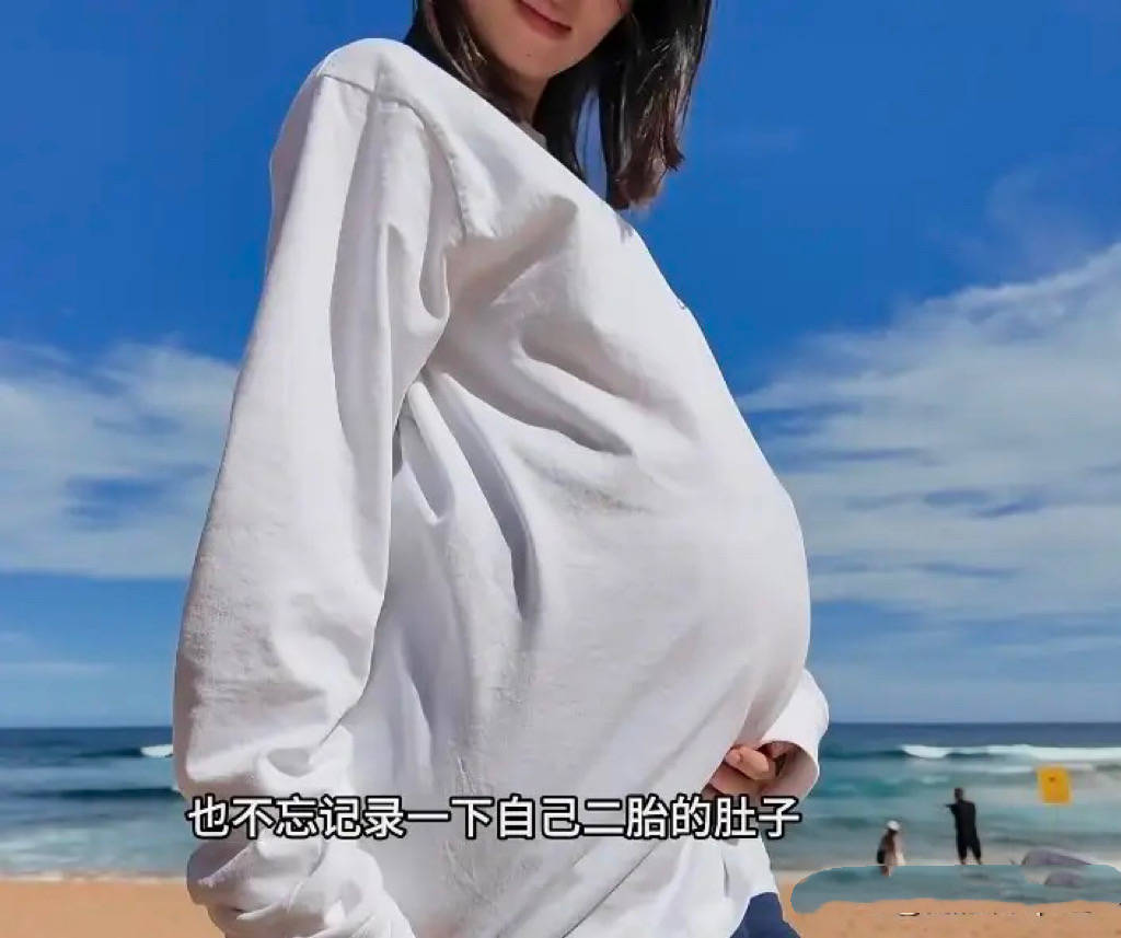 她穿着宽松的白色T恤在海边散步,还特意拍了孕肚照。已经是“肚大如箩”的感觉,孕晚期更得好好照顾自己了。