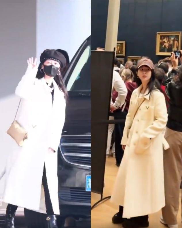 有细心的网友发现,杨紫身上这件白色大衣,居然是2024年就被拍到过的旧款。
