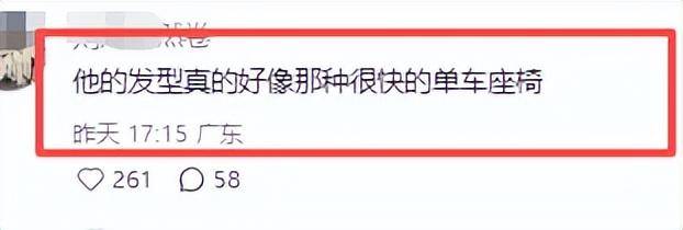 当天他的头发油腻得贴在脸颊和额头上,一缕一缕的格外明显,有网友调侃说像被雨水淋过,还有人说这造型酷似自行车车座。