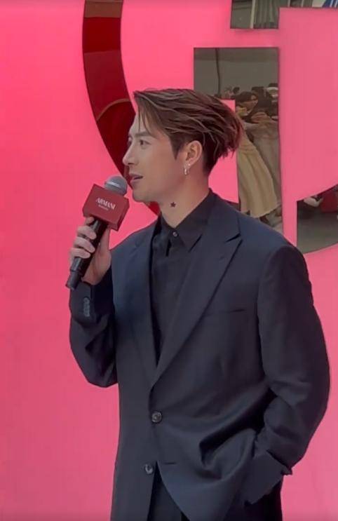 黑色的痘痘贴贴在脖子上格外显眼,和精致的西装造型显得很违和。