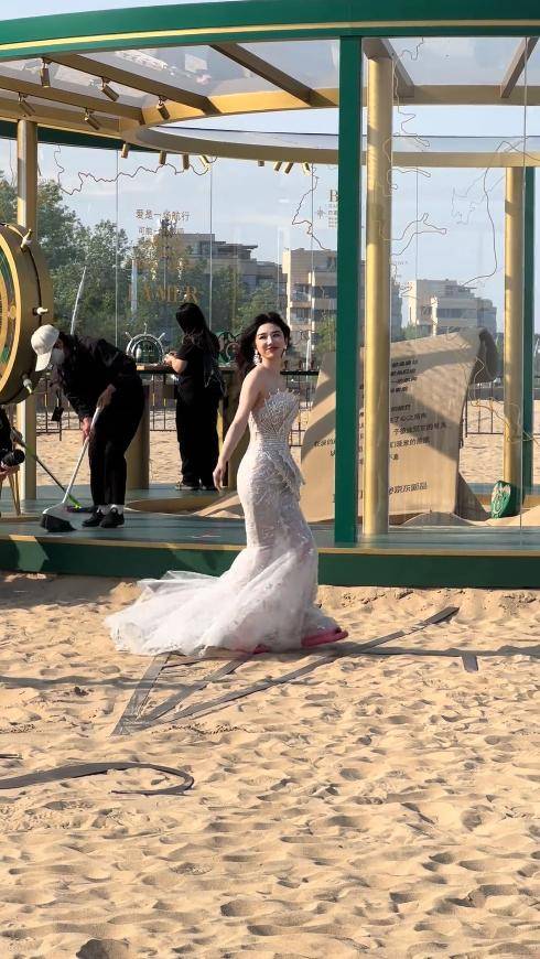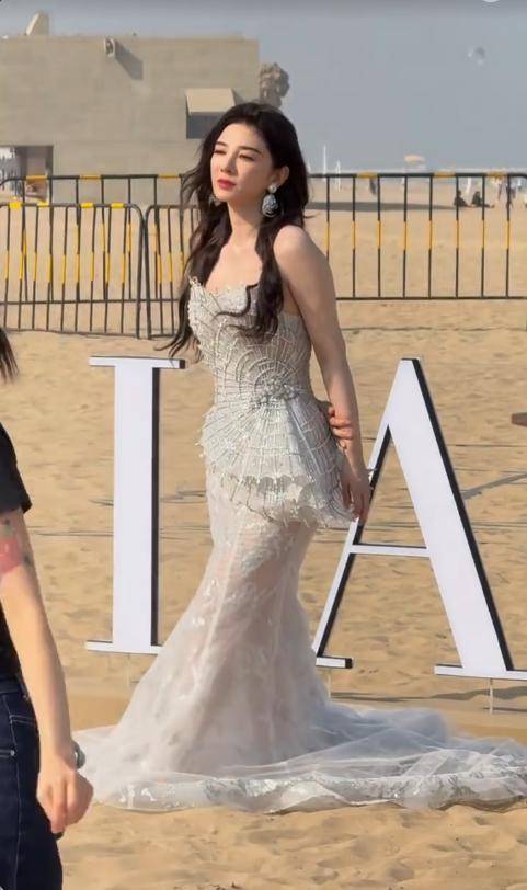 还有次在沙滩上拍杂志,黄奕穿着一件白色纱裙,即使没有灯光美颜,也美的不像话。