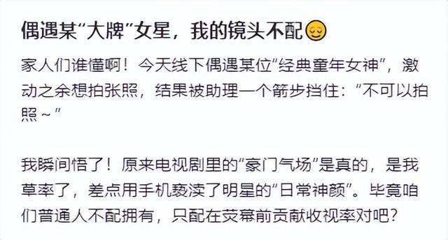 近日,有网友线下偶遇她,想上前合照却遭直接拒绝。