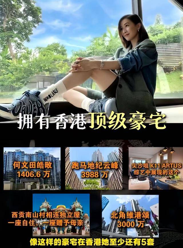她热衷于投资房产,目前持有的房产遍布全香港至少拥有五个物业,市值逾1.8亿。