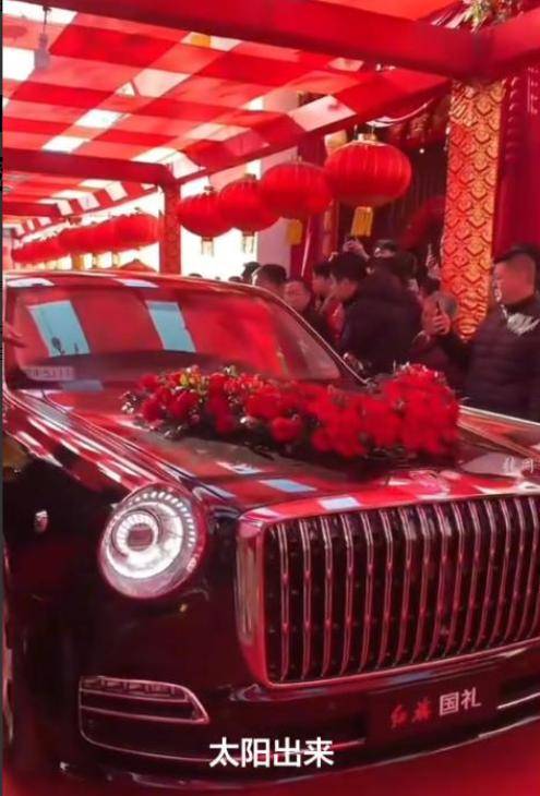 接亲车队更是让人眼前一亮,清一色的红旗轿车,打头的是庄严的“国礼红旗”,后面跟着一溜红旗H9。