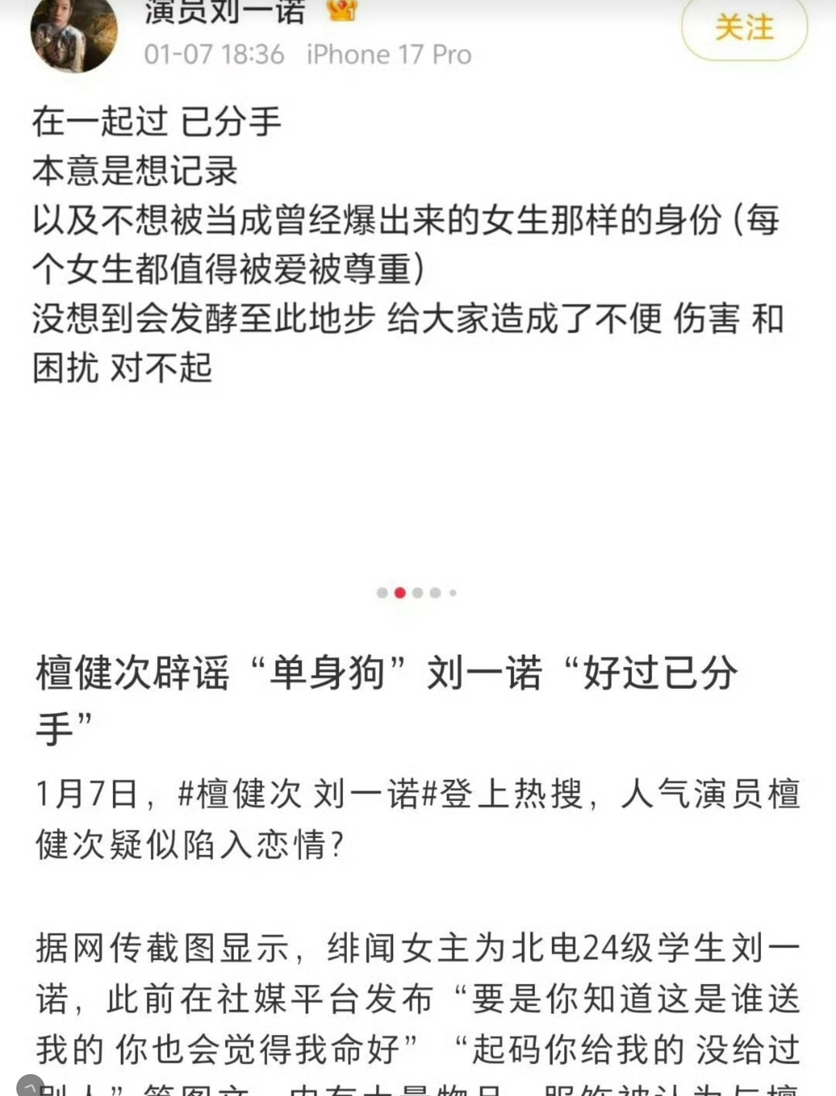 故事得从两个八竿子打不着的热点说起。一边是内娱恋情罗生门:刘一诺被扒出和檀健次有同款地毯、疑似同框定位,还暗戳戳晒“专属礼物”,随后直接官宣“在一起过已分手”,而檀健次则甩出自家宠物狗视频,配文“三只单身狗”巧妙辟谣当前关系,16岁年龄差+57分钟反差回应,让#檀健次刘一诺 在一起过#话题热度居高不下。另一边是网红圈抚养费大战:千万粉丝网红童锦程被曝有个叫童漾的私生子,孩子妈妈讨要抚养费未果,晒聊天记录控诉男方,直言“他连5000元每月都不愿给”,这场闹剧让#童锦程 私生子#话题刷屏网红圈。