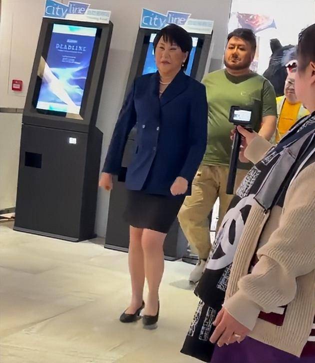 短发、西装裙,脸部妆容特意画得严肃干练,瘦瘦黑黑,下巴尖尖,整个人气场冷峻,活像高市早苗本尊。