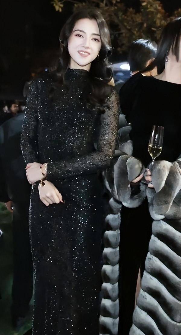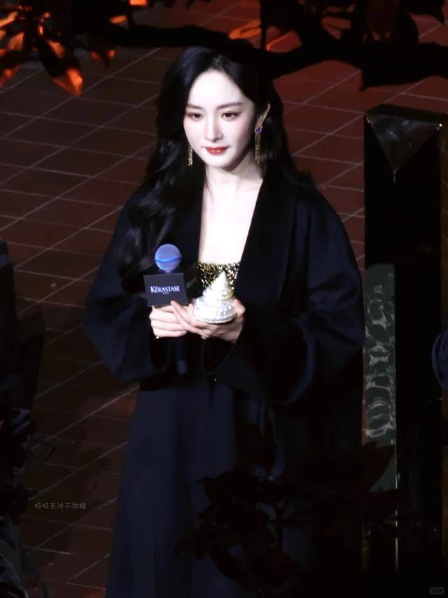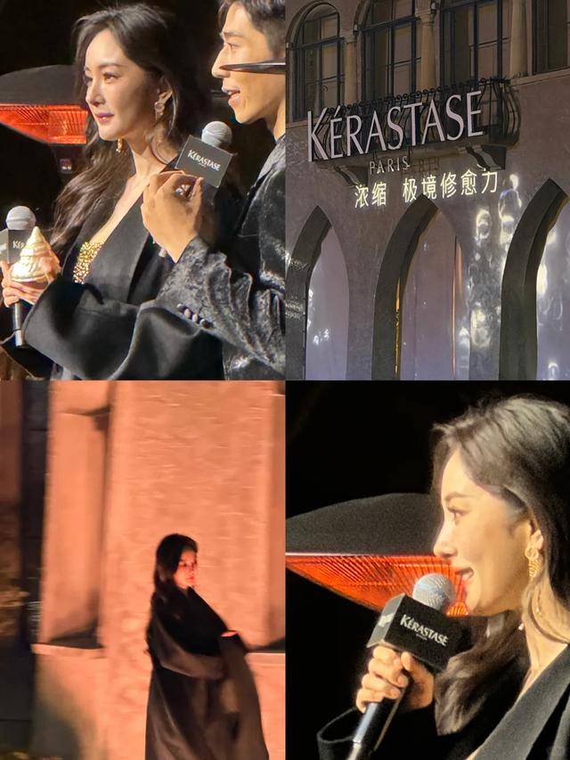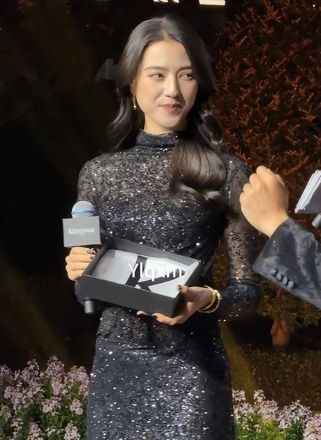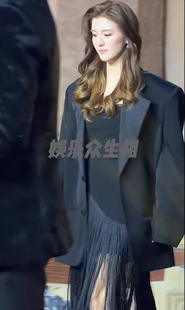 她身穿黑色流苏裙搭配西装外套,发丝柔顺飘逸,被媒体称为“钻光闪耀,折射从容姿态”。
