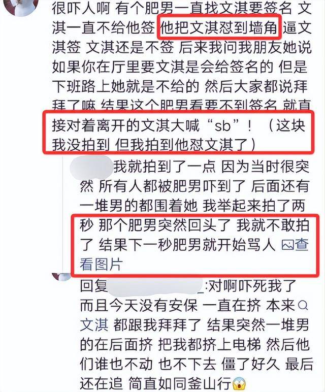 一个说:“文淇这么可爱的小姑娘,被逼到角落还被骂,太心疼了,希望她没事。”另一个说:“这男人是惯犯,早该封他账号了,艺人也是人,不是合照机器。”