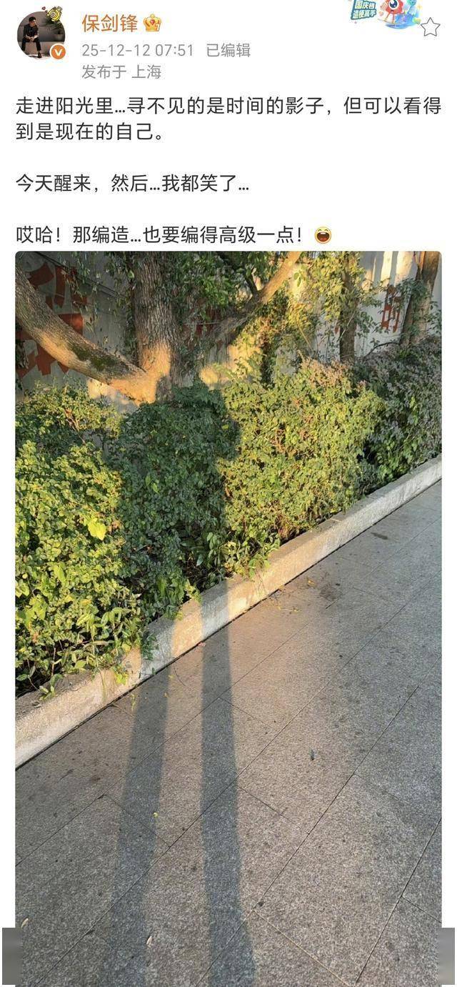 针对其言论,保剑锋及其工作室予以澄清。去年12月12日,保剑锋晒出一张在太阳底下的影子照片,并配文“那编造……也要编得高级一点!”