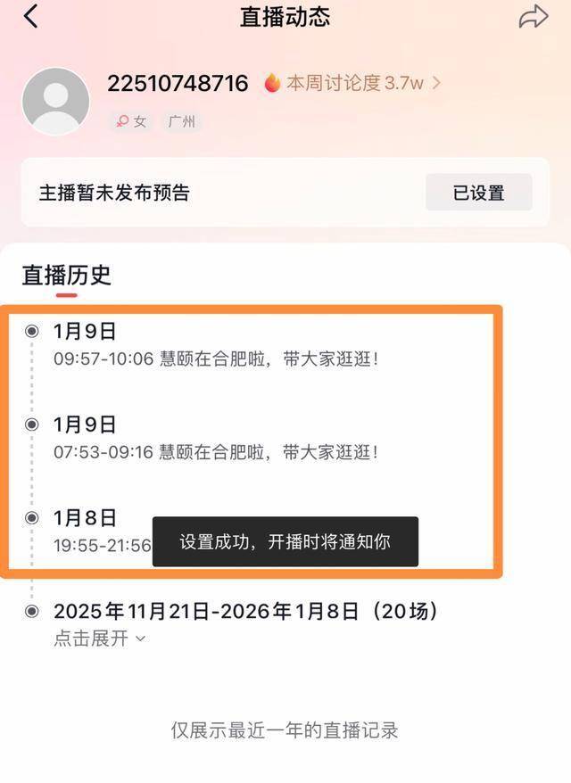 今天(1月9日)上午,打开抖音的时候还看到黄慧颐在合肥直播带货。
