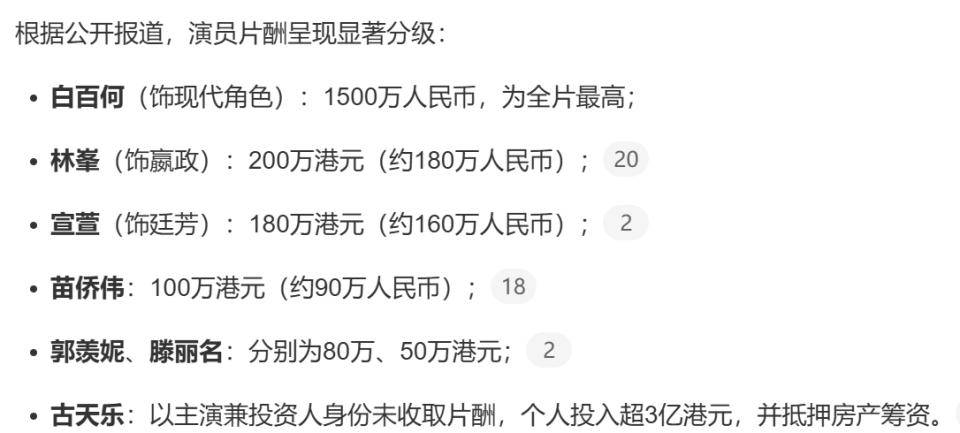 尽管如此,白姐依旧是片酬最高,甚至高过了主演。