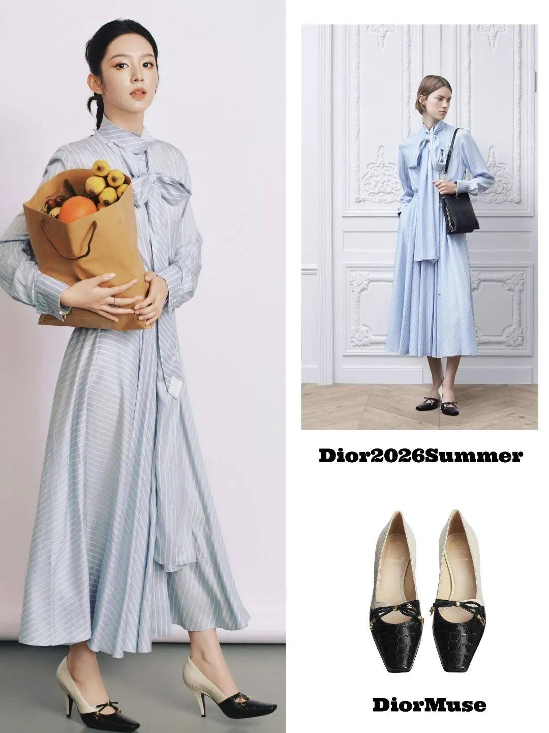 或者看看小S二女儿活动穿搭,她身上的条纹裙子是迪奥真正的品牌大使周也同款,人家2025年就上身了,当时周也不光穿了迪奥的裙子,搭配的珠宝和鞋子都是迪奥,小S二女儿都没有。