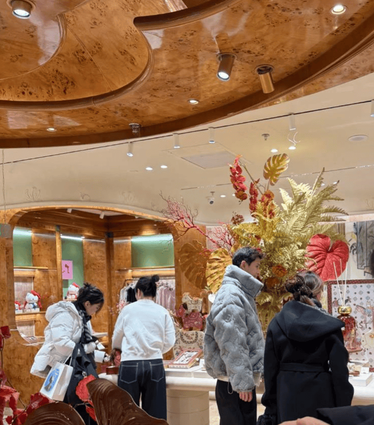 经超穿家居服带老婆逛街!45岁小李琳穿一身黑好臃肿,手牵手腻歪,马上要过年了,商场里面气氛非常浓厚,估计也是出来置办一些年货,真是让人看着就觉得幸福了呢!