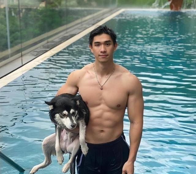 话又说回胡智同,他确实也是继承了吴婉芳优良的基因,五官端正、长相帅气而且身材高大。加上他热衷于健身,麒麟臂、腹肌、人鱼线等,都非常明显。