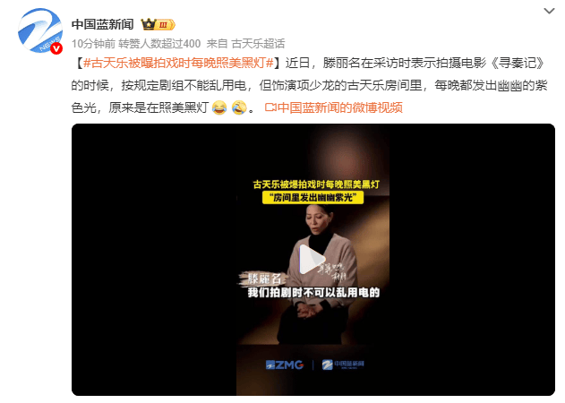 近日,滕丽名在采访时表示拍摄电影《寻秦记》的时候,按规定剧组不能乱用电,但饰演项少龙的古天乐房间里,每晚都发出幽幽的紫色光,原来是在照美黑灯!
