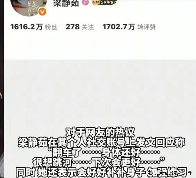 她当场发了条微博:"翻车了,身体还好,很想跳河,下次会更好。 "没过多久,大家发现她把微博设置成"仅自己可见",彻底关上了与外界交流的大门。 这下评论区更热闹了,有人骂她"玻璃心",说"有这功夫哭不如去减肥";也有人替她委屈:"47岁生过孩子,发福不是很正常吗? "
