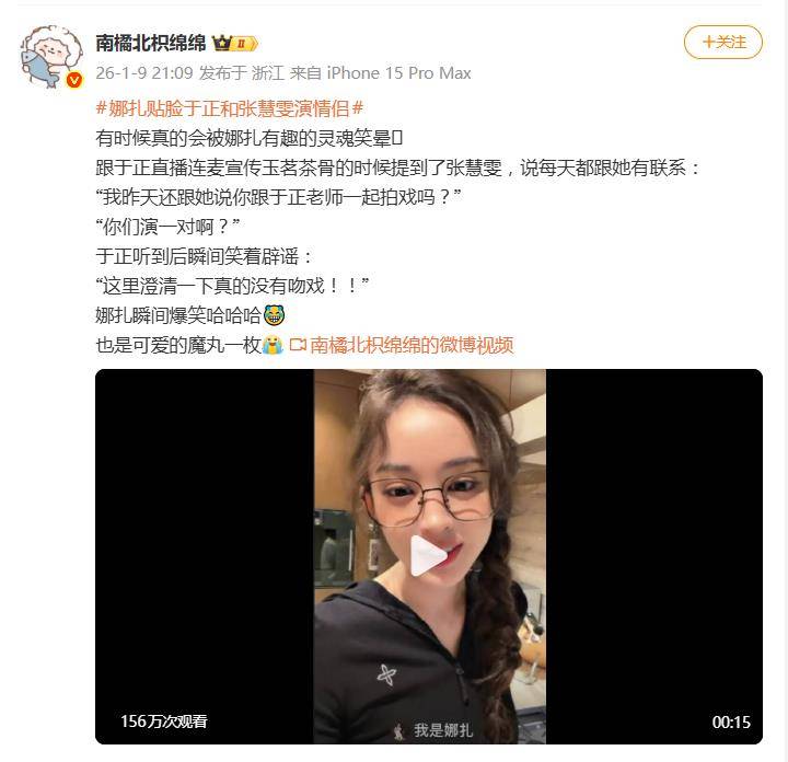 直播中,娜扎聊起和好友张慧雯的日常,随口就扔出一个“大瓜”:“我昨天还跟她说‘你跟于正老师一起拍戏吗?’‘你们演一对啊?’”话音刚落,屏幕另一头的于正瞬间瞪大眼睛,笑着火速辟谣:“这里澄清一下真的没有吻戏!!”斩钉截铁的架势,配上娜扎当场绷不住的爆笑,场面一度“失控”。