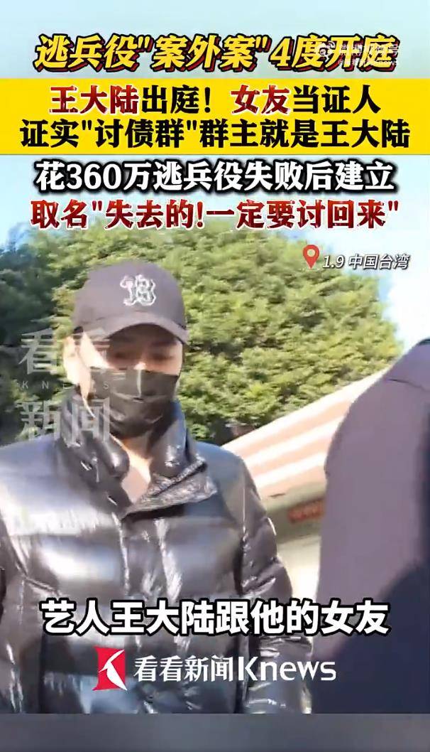 台湾艺人王大陆的“讨债风云”迎来戏剧性转折。1月9日下午,该案第四次开庭,王大陆与主播女友阙沐轩一同现身法院。而这次庭审,女友从旁听席走到了证人席,一记关键指