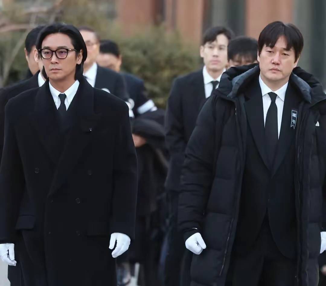 因丧尸剧《王国》中年再度走红的朱智勋,以及韩版《纸钞屋》的主演刘智泰等实力派,在前辈安圣基的遗像前深深鞠躬,最后参与抬棺。