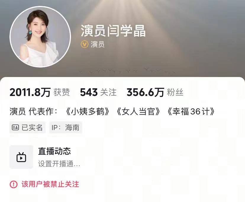 账号被封,闫学晶即使恢复直播,可能影响力也大大下降,代言品牌被抵制,第三方数据显示,其抖音账号拥有357万粉丝,单条广告报价高达12万元。