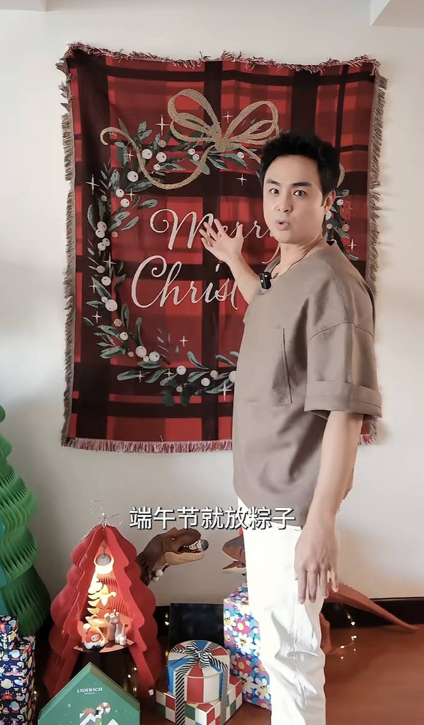 在明道家里有一个区域是专门用来庆祝各种节日的,就是一个空置的墙面、不同节日就会铺上不一样的毯子,地上在稍微装饰,节日氛围就来了。