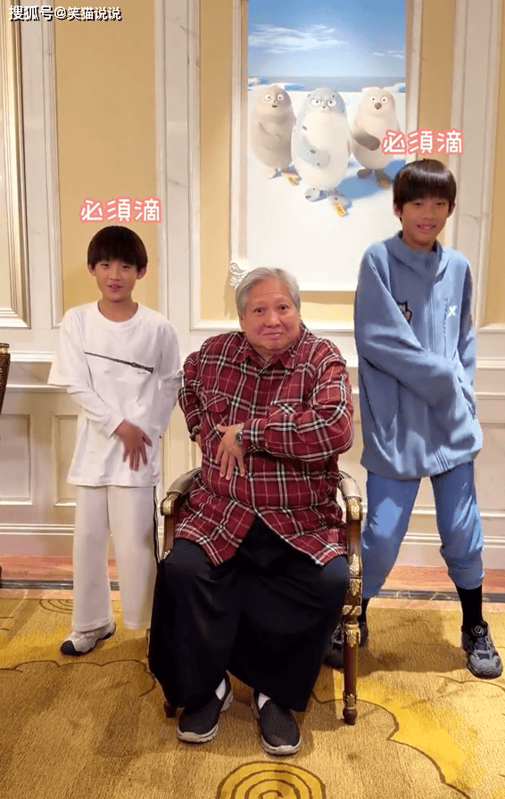 在视频中可以看到洪金宝和他的两个孙子一起跳舞。洪金宝穿着红色格子衫搭配黑色的宽松长裤,他穿着白袜搭配着黑色的运动鞋,虽然头发花白,但是面色红润,气色很不错,双眼有神,精气神也很好。洪金宝坐在c位的位置上,他的两个孙子各自站在两边,跟爷爷洪金宝一起学着动画海豹角色的动作跳舞,爷孙三人很熟练地学着舞蹈动作跳舞。