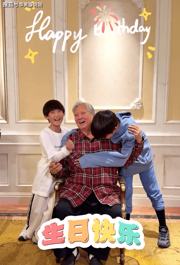 洪金宝的跳舞动作也把身边的两个孙子逗得哈哈大笑。在跳舞结束之后,两个孙子都忍不住抱住爷爷洪金宝,洪金宝也被两个孙子的笑容感染了,忍不住开怀大笑,这画面看起来十分温馨有爱。洪天明也在视频画面上配文写道:“happy birthday,生日快乐!”