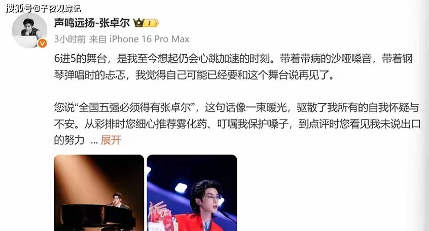 张卓尔的感谢信里,华晨宇那句「声鸣远扬5强里,必须有张卓尔」被反复说起。