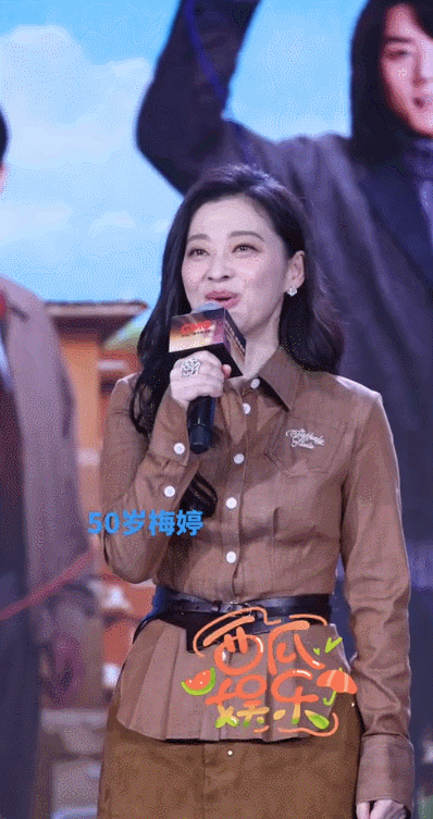 梅婷肤色修白了,但是眼神内的疲惫、若隐若现的双下巴还是有的,岁月痕迹很浓。