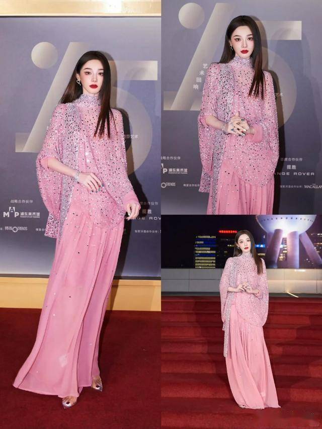 彭小苒一袭粉色闪片亮钻裙搭配长直发造型惊艳全场,粉嫩透亮的肌肤与清甜笑容,让她收获“人间水蜜桃”的盛赞。