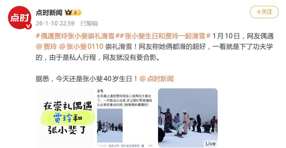 1月10日,一条“在崇礼偶遇贾玲张小斐滑雪”的帖子悄然爬上热搜。网友的兴奋劲儿还没过,又猛地一拍大腿:嚯,今天不正是张小斐的40岁生日吗?这庆生方式,够“冻人&rd