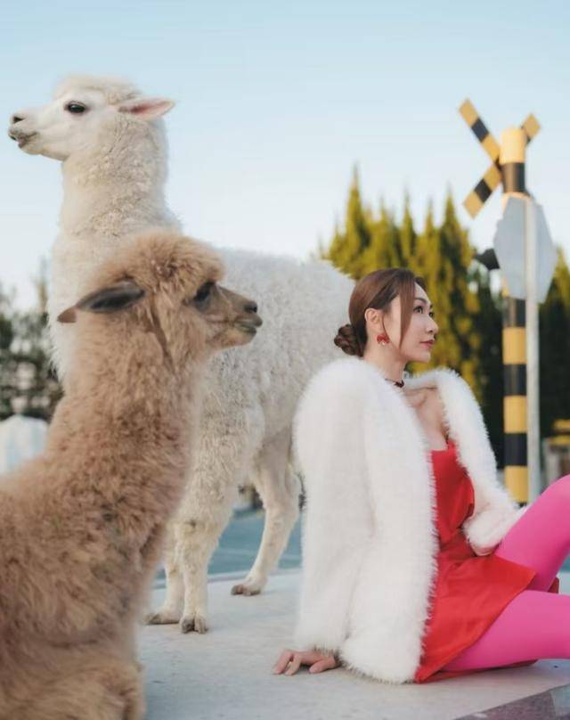 同时在黄嘉雯身边还有两只可爱的羊驼,不得不说的是,黄嘉雯的这身 造型还是很吸引到大家的关注。
