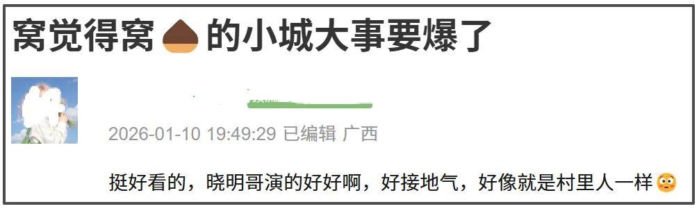2026开年大戏如约而至。央视八台选择了由赵丽颖和黄晓明等主演的《小城大事》(原名《造城者》)来打响开年第一枪,可以说是对该剧寄予厚望。如今,《小城大事》开播,观众们的首波反馈也新鲜出炉!