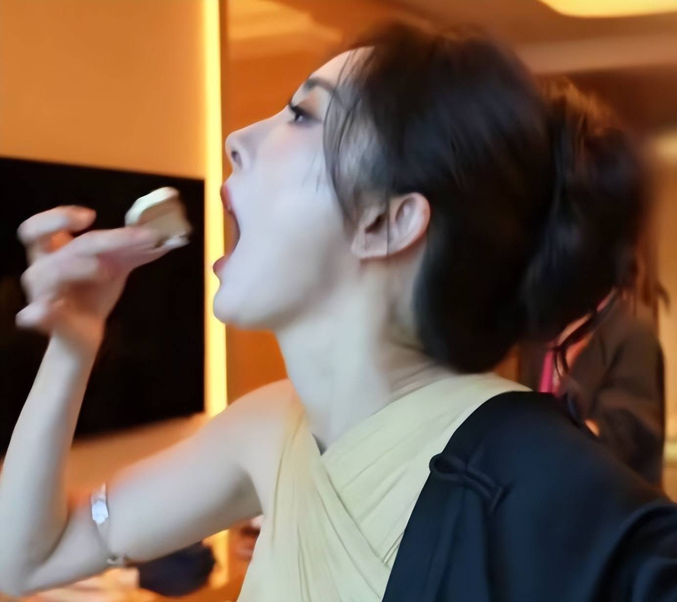 还有一次,她夸张的大口吃下一个小蛋糕,也被网友骂用力过猛。