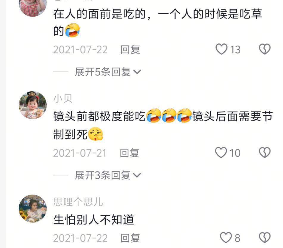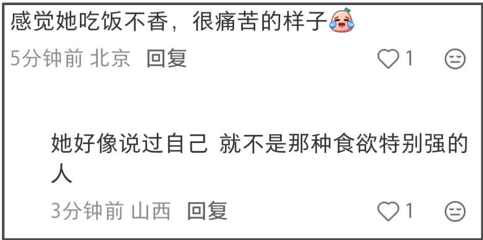 也许是被挑刺挑多了,现在她索性开始放飞自我,在镜头前不再掩饰自己没食欲的一面,果然没人说她“装”了。