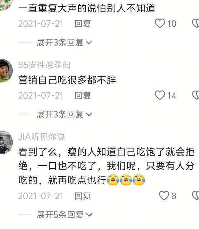 可也有不少网友觉得,她其实是被骂怕了,以前就老有人拿她的食量说事,她也因为有一次吃得太多,被骂上热搜过。