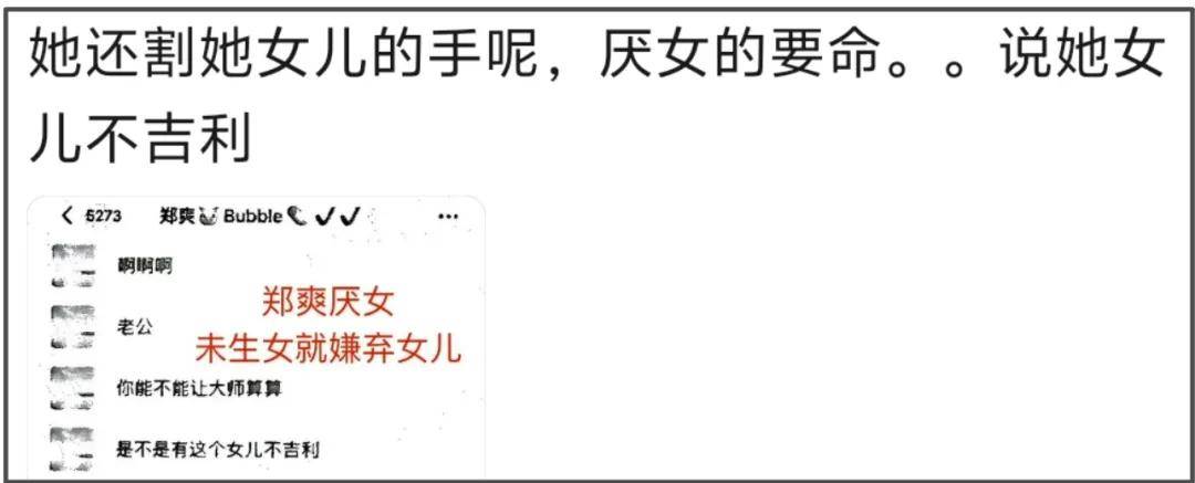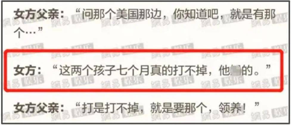 郑爽代孕了一男一女,早期她不想要女儿了,就说女孩不吉利,想办法不要,后期郑爽两个孩子都不想要了,对着7个月大的两个胎儿,得知无法放弃之后,郑爽竟然来了一句:“打不掉,他X的”;