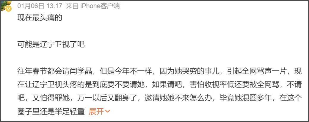 而闫学晶本人受到的影响最大,不仅代言品牌全网发声明和她割席,以往都会去的辽台春晚可能都会受到变动,网友的抵触情绪很大。