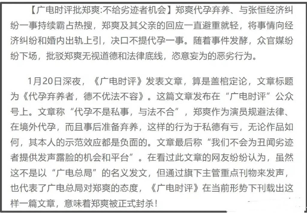 一句“被封杀的郑爽”,加上白纸黑字的广电通知,突然就让人意识到了事情的严重性。